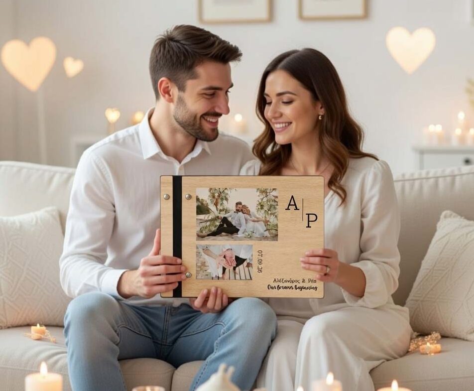 Κρατήστε ζωντανές τις πιο όμορφες αναμνήσεις σας με το Ξύλινο Άλμπουμ Φωτογραφιών, ένα μοναδικό αντικείμενο που συνδυάζει κομψότητα, προσωπικότητα και δημιουργικότητα. Προσθέστε το όνομά σας ή ένα ειδικό μήνυμα χάραξης για να γίνει πραγματικά δικό σας.