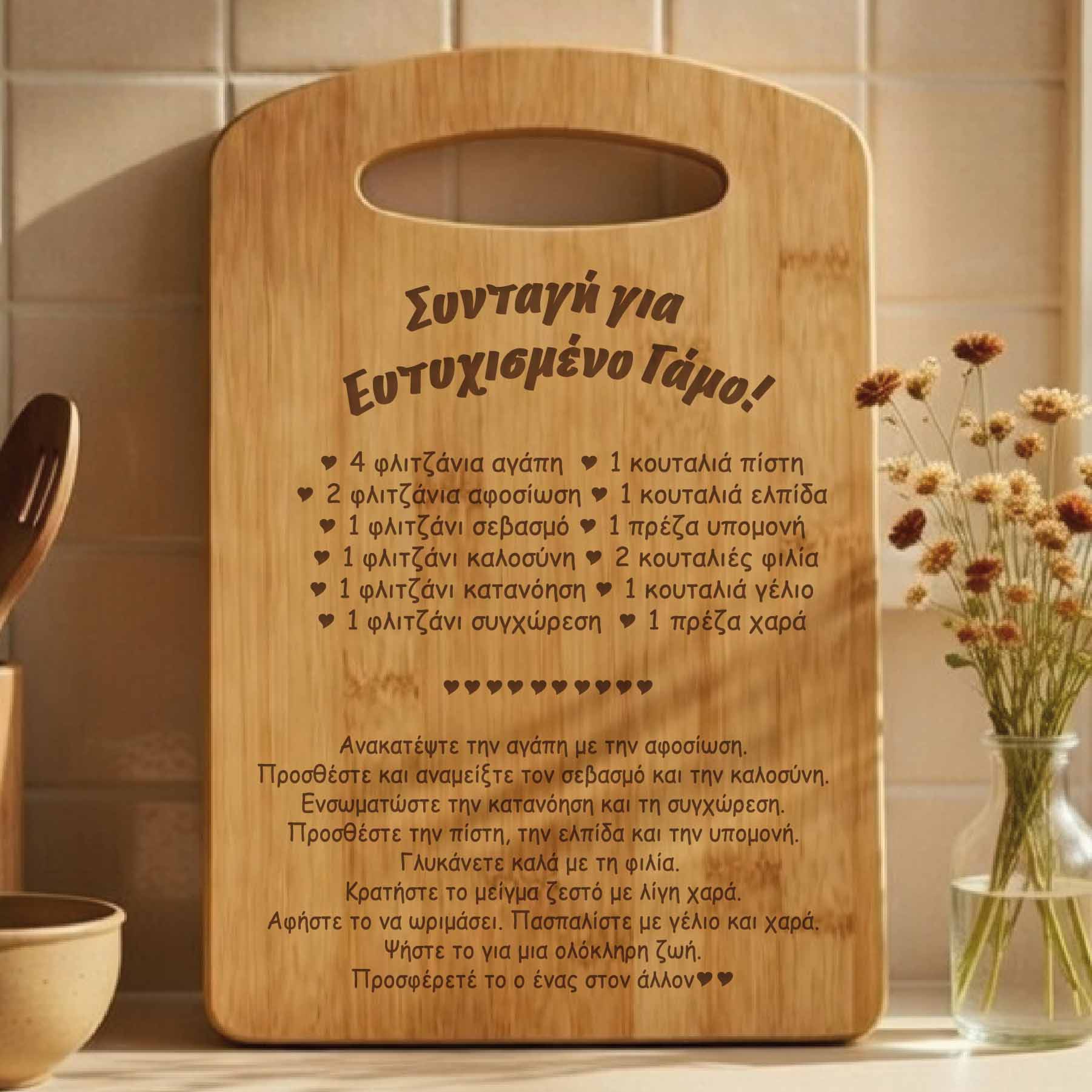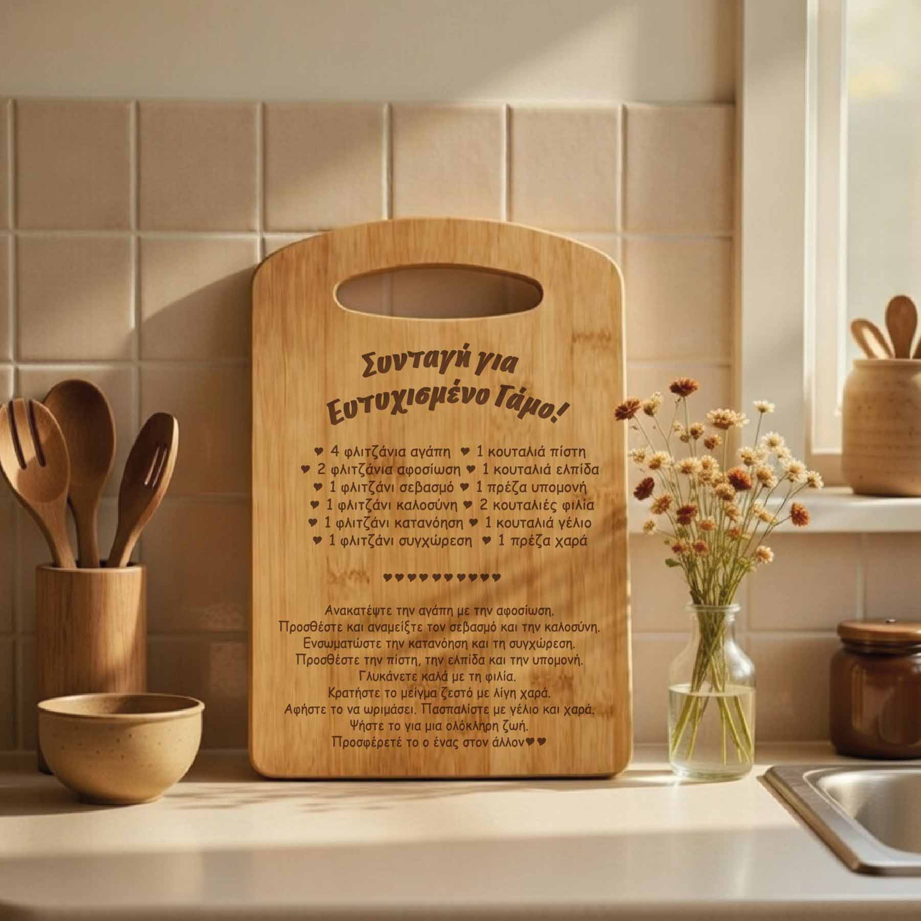 ✓ Ξύλινη επιφάνεια κοπής χαραγμένη με Laser