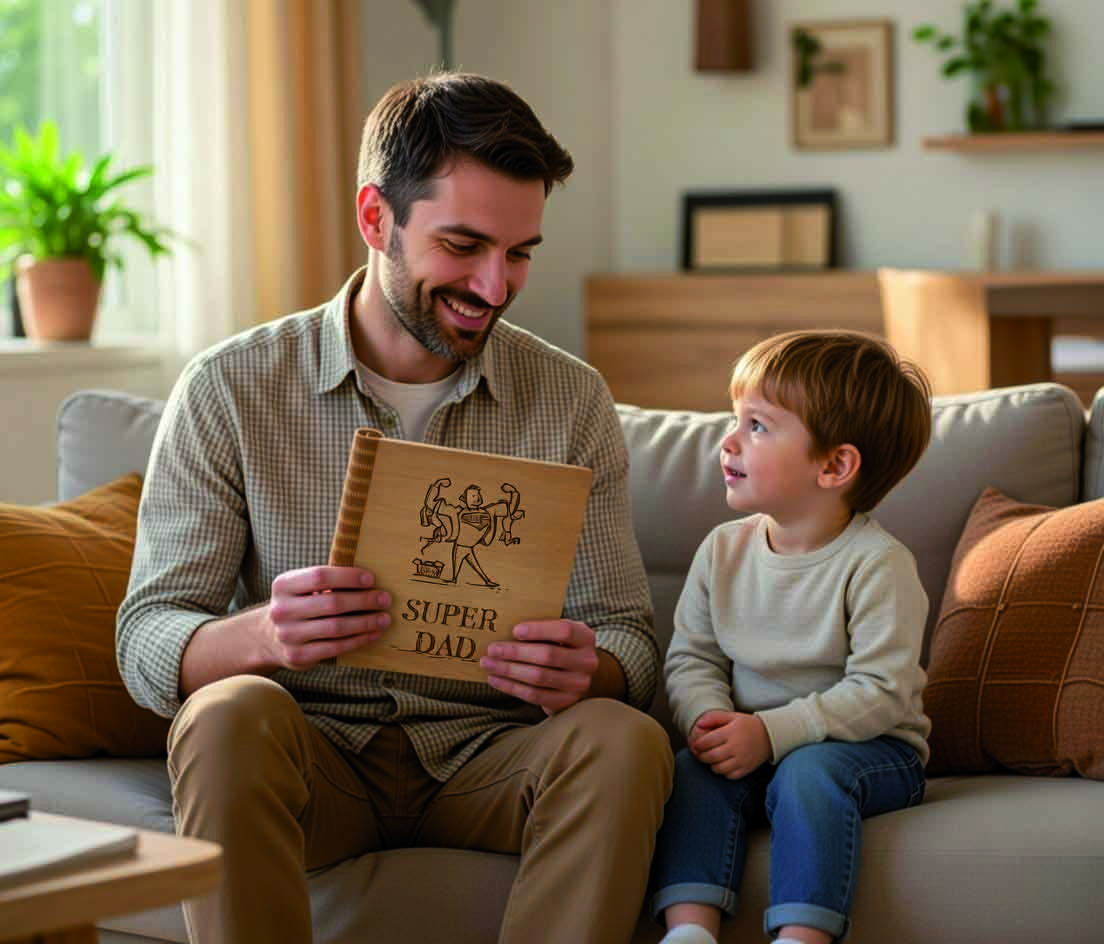 Αυτό το ξύλινο σημειωματάριο, σχεδιασμένο ειδικά για τον Πατέρα, είναι ένα δώρο με ουσία και συναίσθημα. Ένας προσωπικός χώρος για σκέψεις, ιδέες, στόχους, λίστες και μικρές σημειώσεις της ημέρας — όλα συγκεντρωμένα σε ένα καλαίσθητο και διαχρονικό αντικείμενο.